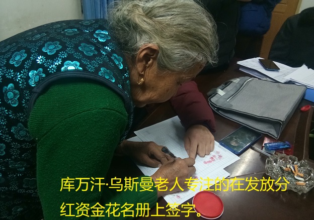 玉斯屯克帕万拉村在英艾日克镇辖区1公里,村里地少人多,村民主要种植棉花、小麦、辣椒、核桃等。在扶贫项目伽师瓜贮藏基地、木耳基地建成并见效后。12月26日晚上,在玉斯屯克帕万拉村村委会会议室里,玉斯屯克帕万拉村党支部书记刘如湖和村“两委”、“访惠聚”驻村工作队的同志一起给18户贫困户发放了分红资金。