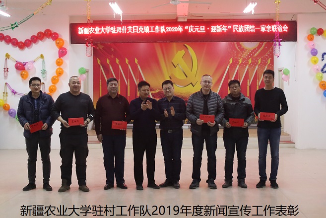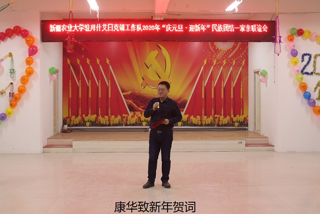 活动伊始,新疆农业大学党委常委、宣传部部长、“访惠聚”工作队总领队、托万克拜什艾日克村第一书记康华致词,康华表示,新疆农业大学驻村工作队“不忘初心、牢记使命”坚定不移的走习近平新时代中国特色社会主义道路,增强“四个意识”、坚定“四个自信”、做到“两个维护”;随后紧紧围绕自治区“访惠聚”驻村工作“1+2+5”八项重点任务进行年度工作总结,同时感谢拜什艾日克镇党委对新疆农业大学驻村工作队的大力支持,并致敬全体驻友无私的辛勤付出;最后向全体领导及老师们致以诚挚的新年祝福,并对2019年新疆农业大学驻村工作队新闻宣传工作进行了表彰奖励。