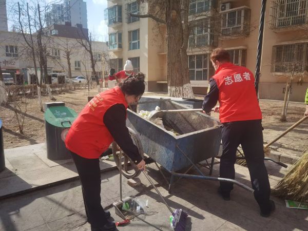 活动当天,阳光洒在社区的每一个角落,十余名志愿者身着鲜艳的红马甲,仿佛一道道温暖的光,穿梭在社区的大街小巷。他们手持扫帚、簸箕等清洁工具,干劲十足,分工明确,对辖区主次干道、绿篱中的垃圾和杂物进行了细致清理。志愿者们不放过任何一处卫生死角,认真地将堆积的垃圾和散落的杂物清扫干净,用辛勤的汗水为社区居民营造了一个整洁、舒适的生活环境。