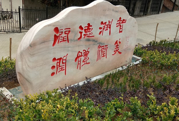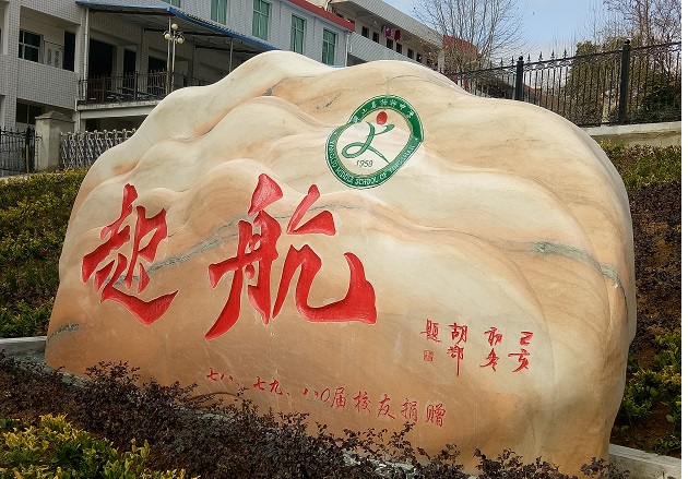“浮云一别后,流水四十年”,欣逢毕业40年、建国70周年之际,原杨柳高中一九七八、七九、八零届校友心系母校,集资五万余元,向母校捐赠长4.7米、宽2.2米、厚0.7米、16余吨重的“起航”校园文化石,寓意“杨柳‘润智’,人生‘起航’”。“起航”校园文化石,正面“起航”二字,由书法界传为神话的湖北省英山籍父子书法家中的少辈胡鄂先生撰写,背面“润德润智润体润美”由中国书画家协会理事、著名军旅书法家胡学农先生用四种不同字体书写而成。