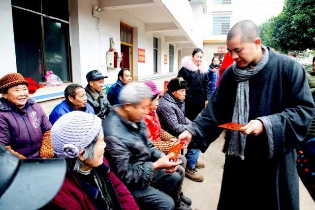 1月 2日,农历腊八节。武冈市南秀寺宽平法师率弟子僧侣等人,来到安乐敬老院和晏田乡敬老院等地,送去热气腾腾的腊八粥,并且每一位老人还得到一个红包,50来位老人高兴地说,今年的腊八粥好吃好吃。该寺年年在腊八节送腊八粥和派发红包,该寺给弱势群体送福祈福善举,得到了当地社会的点赞。