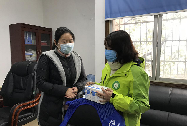 接收到物资后,株洲市种子社会工作服务与发展研究中心理事长苑芳乐与其成员第一时间赶赴株洲市石峰区田心街道北岭社区、叫鸡岭社区,将口罩送至社区一线工作人员、网格员手中。