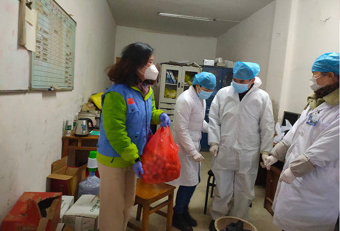 服务过程中,志愿者陈瑞彬带来了200斤自家的砂糖橘和3箱方便面,送给服务地点的医务人员、警察与志愿者等人,为一线工作人员提供后勤保障。