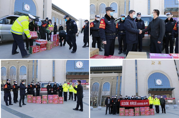 2月17日上午,爱心企业延安亲亲旅游有限公司一行在延安铁路公安处副处长苑纲的陪同下,向延安站派出所、特警支队、交管一大队捐赠了一批消毒液、方便面、矿泉水等防护用品及生活物资,为坚决打赢疫情防控阻击战贡献一份力量,为一线警务人员的工作生活提供了有力保障,同时也是对抗疫工作的支持和鼓励,温暖了所有警务人员的心。