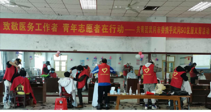 在疫情防控关键时期,考虑到战疫一线的医护人员在严密的防护服下过长头发容易出汗、滋生细菌,为方便医护人员工作,2月17日,在武冈团市委的组织下,so发屋8名青年志愿者走进市人民医院开展爱心义剪志愿服务活动,为长期坚守“疫”线的医护人员送去了暖心又实在的服务。