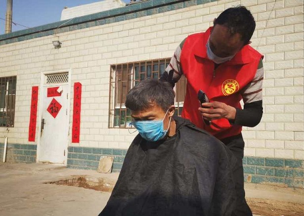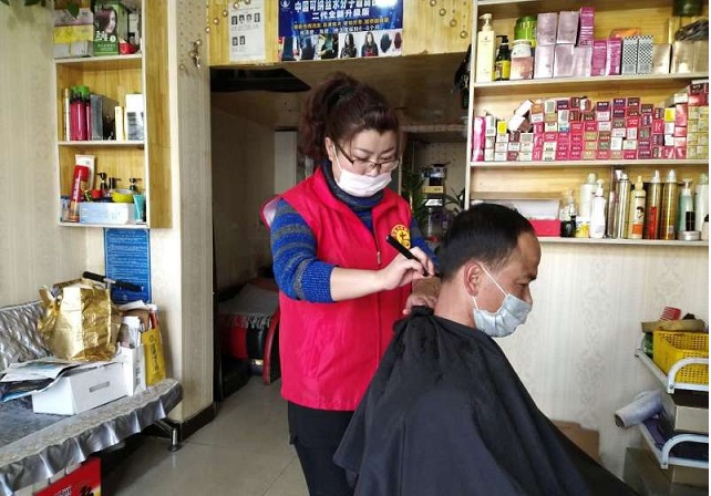 25日上午,3名义剪理发师带着理发用具分别来到实验林场疫情防疫点和居民区,为驻守卡点不能回家的防疫人员和因年老体弱不便外出的老人进行免费理发。