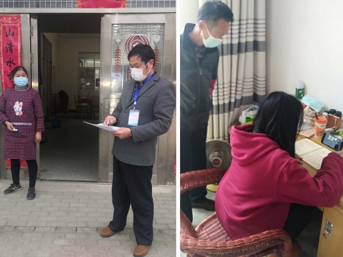 清风网讯(通讯员 李永存 邹玲)在新型冠状病毒防控时期,面对当前的疫情,湖北英山县方家咀中心小学党员教师“志愿者”进行入户走访排查,搞好疫情防控工作,按照“户户必须见人”的原则,深入彻底做好入户摸排,打好家乡疫情“保卫战”。不漏一户,不漏一人,直至疫情结束。在做好入户排查时,党员教师“志愿者”向每一住户耐心解释,让住户居民理解和配合,为打牢疫病防控工作提供有效数据。在这次疫情中,方家咀乡小学党支部书记陈国平主动请愿甘当了自己家乡余咀村的疫情防控志愿者,陈国平每天要参加20多户的排查任务,对户主进行细致询问,了解情况,并进行了详细登记。据了解,方家咀乡面对疫情,严肃对待,积极行动,制定防疫预案,制定防疫措施,除安排教师参与入户排查外,还通过微信群、qq群等渠道向家长发布防疫知识,加大宣传力度,让家长认识到防疫的重要性,提高自我防范意识,同时还要求教师主动联系家长,了解学生健康情况,确保师生安全,共同扎牢防疫“保护网”。