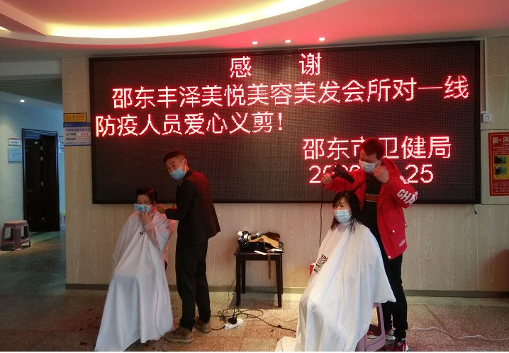 新的一年从"头"开始,一个全新的发型为健康卫士带来了崭新的精神面貌。据了解,从2月25日开始,利用三天时间,邵东市卫健局机关、卫生计生监督执法局、疾控中心、中医医院、两市塘街道社区卫生服务中心等5个单位共426名健康卫士,通过此次上门义剪活动解决了"头"等大事。疫情当下,全体一线防疫医务人员将以更饱满的热情和更昂扬的斗志投入到为人民健康服务中去,与全市人民共克时艰,再创辉煌!