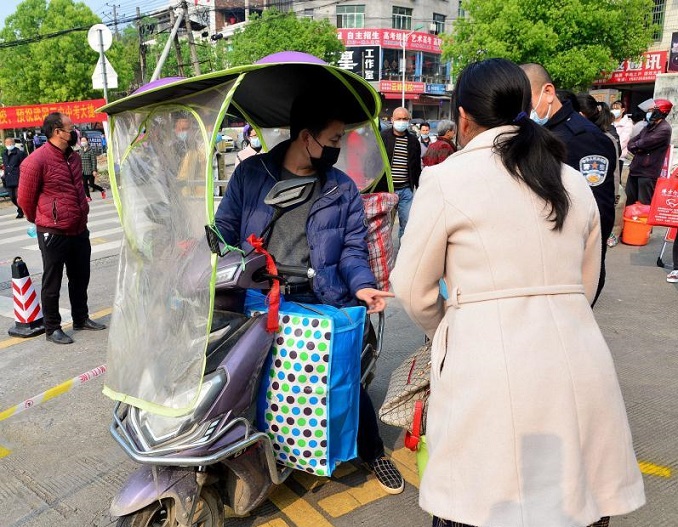 党员教师毛小卫说:“禁家长陪同入校也是学校切断传染源的一个关键举措,在这个特殊时期,我们党员甘为抗疫复学先锋。学生行李多,我们为他们运送一下行李,既体现了我们党员的服务精神,又带给学生党组织的温暖关怀。”