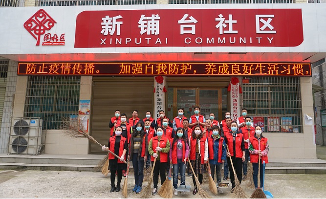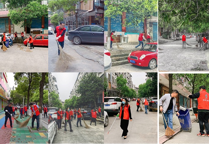 活动中洋溢着热烈欢快的气氛,志愿者们纷纷拿起扫帚、夹子、撮箕等卫生工具,分组对新铺台社区音像城、体育馆地段的各条街道进行清扫。