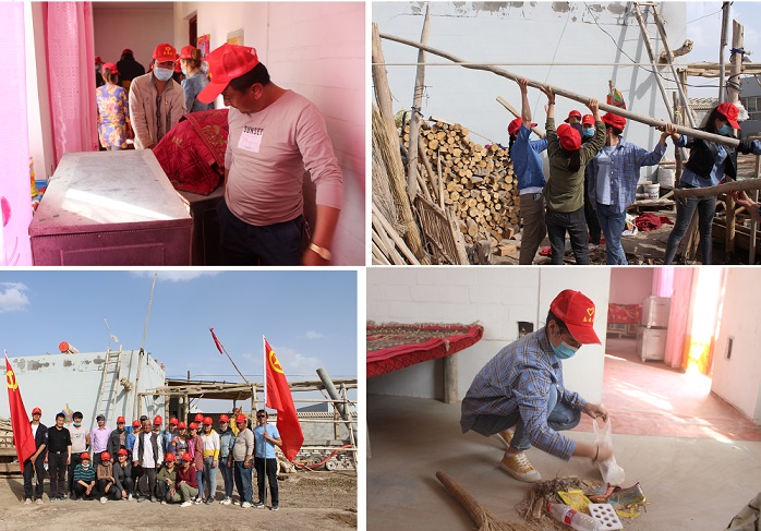 4月24日下午,“访惠聚”驻村工作队、村两委组织村志愿服务队30人,分别前往两名老党员家,帮助打扫房屋、整理庭院。志愿服务队按照事先分组一到老党员家,就分工合作开始忙活起来,有的打扫房间、有的整理杂物、有的清理院落、有的搭建板床,大家各司其职,干得热火朝天。经过大家3个多小时的共同努力,室内室外物品摆放有序,卫生干净整洁。老党员看到家中的变化,露出了甜蜜的微笑,嘴里不停地说着谢谢你们,谢谢你们……