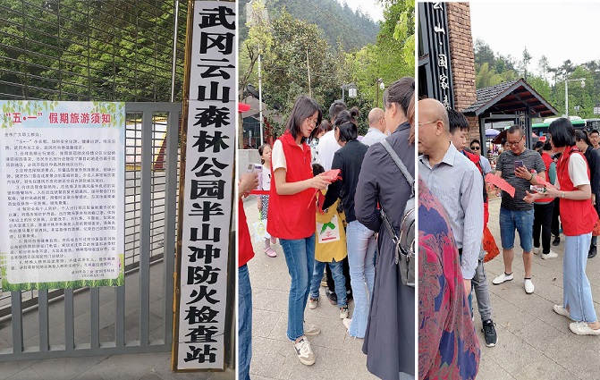 “考虑到‘五一’期间云山人流量会比较大,我们组织志愿者在云山半山街广场开展爱国卫生运动和文明旅游志愿活动,尽自己所能为游客提供帮助,让旅游变得更文明、让游客玩的更舒适。”志愿者小舒说道。