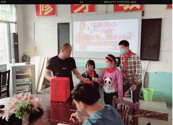 清风网讯(通讯员 周文化 刘先华) 5月13日早读课,武冈市稠树塘镇法新完小在二楼会议室举行了“共享蓝天·携手成长”一元捐爱心捐款活动。