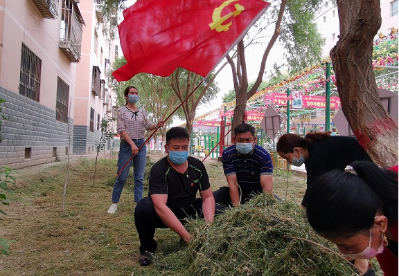 为为了美化社区环境,提升社区居民党员的服务意识,树立党员先锋模范带头作用。5月15日,锦绣社区党支部动员社区在职党员组成志愿者服务队,深入环境卫生整治一线,身先士卒,真抓实干,成为辖区环境卫生整治工作中一道靓丽的风景线。
