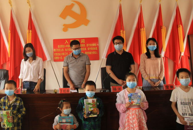 活动中镇团委书记、爱心企业代表、中心校领导共同为该村28名留守儿童现场发放爱心图书,随后还前往贫困留守儿童家中走访慰问并送去“双结双促”微心愿大礼包。