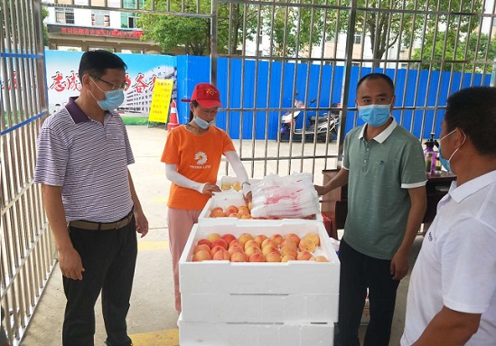 6月9日上午,红安县上新集镇果园爱心人士臧千雪从自家果园采摘的新鲜水蜜桃送到大赵家高中,慰问在封闭区内的高三年级教师。
