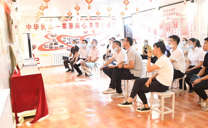 会议开始,各共驻共建单位一同到锦绣花园小区参观指导“党建引领民族团结”示范点、观看了示范点宣传片。接着,锦绣社区围绕上个月大党委会提出的改善新步行街的卫生环境、食品安全和消防安全三方面采取的措施做出简短汇报,并提出了今天需要共驻共建单位配合解决的地面修补的问题。