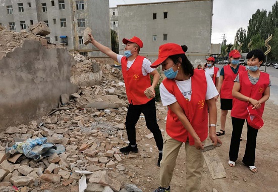 当天,25名青年团员在社区工作人员的带领下,对辖区内的卫生死角进行彻底清理。今日辖区内到处都是志愿者们的身影,他们有的捡拾生活垃圾,有的整理院内施工地堆积乱放杂物,个个忙得火热朝天。用实际行动来爱护家园环境。