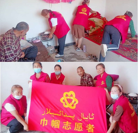 买买提·买合木提是阿克艾日克村的村民,因残疾长期卧床不起,日常生活自理困难,当天志愿者到其家中,帮助其开展庭院整治、打扫卫生、做家务,将屋内院内外收拾干净,并为他做了一顿美味的饭菜。经过志愿者一下午的努力,买买提·买合木提家中终于变得干净整洁、焕然一新。