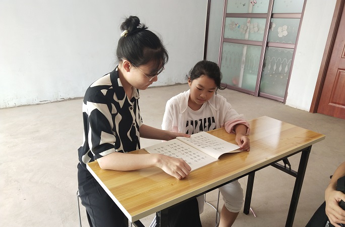 来自宁波的金同学与小朋友共同阅读了四大名著之一《西游记》,在阅读一个个有趣的降妖除魔故事时,孩子也感受到了中国文学的魅力。城市的喧嚣在这一刻被书香洗刷,夏日的热浪在这一刻被书香冲散。邓同学则通过趣味的拼音教学,将原本略显枯燥的a,o,e变成漫画,降低了小朋友学习的难度,又增强了互动性。在初次学习后,志愿者也不忘带领小朋友再复习一遍,多次练习。高同学在辅导孩子功课后分享了一段个人经验,:先给孩子营造一个安静地学习氛围,让孩子自己独立做作业是很重要的。第二个环节,帮助孩子解决作业中遇到的难题。从未知到已知,一步一步地引导孩子,逐渐地向正确答案靠拢。