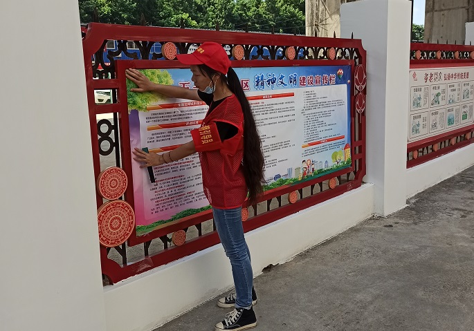 清风网讯(通讯员 :任美霖)7月10日早晨,南宁市江南街道五一中路社区的志愿者们接到了任务,任务要求将社区及辖区范围内各居民区宣传栏的宣传海报更新。