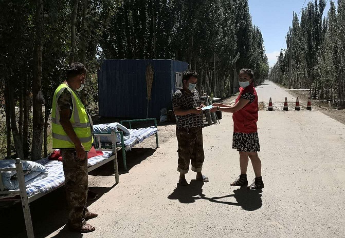 8月3日一大早,村第一书记、工作队队长许多清准备如往常一样去为卡点值班人员送矿泉水,得知此事后,刚刚配送完物资的90后党员干部温且姆·巴拉提第一个冲出来说:“我也去帮忙”,这便又去完成另一个防疫任务。然而,家中仅留年仅3岁的女儿尼尕热一直交由妈妈照顾。
