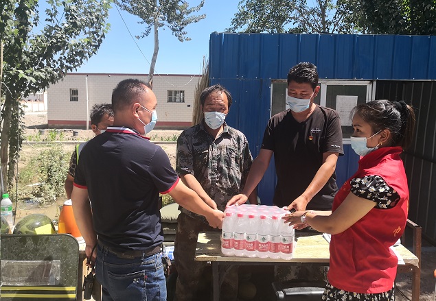在党员干部温且姆·巴拉提的热心帮助和耐心翻译下,当天英阿克艾日克村值班后勤保障工作任务完成,本次共为卡点16名值班人员送去6箱矿泉水和20余个口罩。