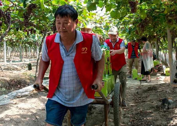 清风网讯(通讯员;袁孝冲)“来,又是一车了,大伙帮忙扶一把。”只见身着红马甲的志愿者们用手拉车一车接着一车地从余姚市河姆渡镇芦山寺村果农孙惠明大伯的果园里装运出260多箱葡萄,帮助孙大伯义摘义卖葡萄达2100斤,销售金额近万元。