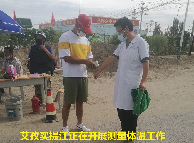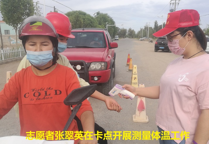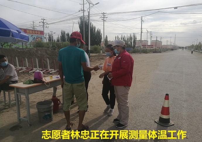 “您好,我是库木巴什库勒村的志愿者,志愿者不仅是一个称呼,他们是汗水侵染过得微笑。请您扫描二维码,以便您通行,现在对您进行体温测量,谢谢您的配合,祝您生活愉快”。这是库木巴什库勒村的志愿者对进出的车辆和人员进行管控,确认属于本村居民及是否到过疫区、测量体温正常方可放行进入本村,从而拧紧疫情防控的“安全阀”,确保了村民的健康安全。