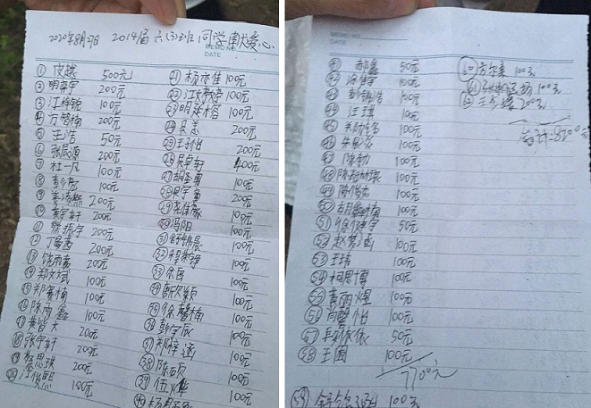 一人苦难,众人抱薪。皮越妈妈的倡议得到了六(三)师生的积极响应,大家纷纷伸出援助之手,参与到这次捐助活动中。几十元、一百元、两百元、四百元、五百元……短短几个小时,先行知道消息的67名同学、家长和班主任姜金霞、数学老师杨跃、美术老师郑再坤等筹集善款10000元。
