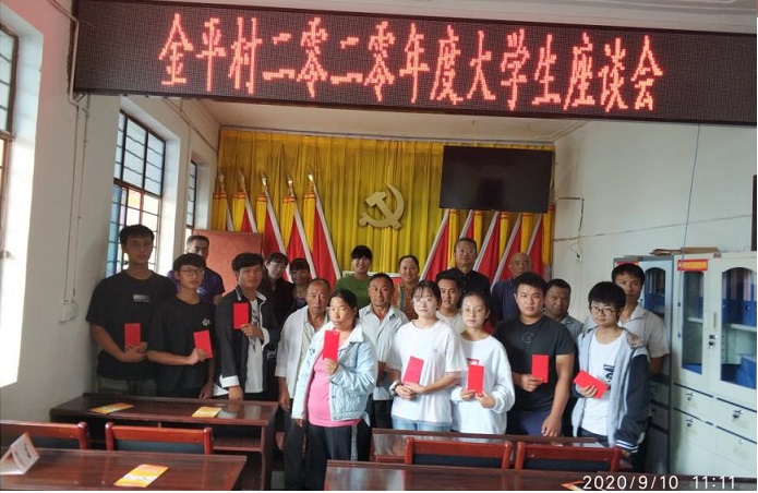 金平村党支部书记郭玉才宣读了《2020年凤庆个私协奖学金资助名单》;金平村第一书记、驻村工作队长范燕平代表金平驻村工作队、县市场监督管理局对凤庆县个体私营企业协会热心支持金平村教育事业发展表示衷心的感谢,对即将走进大学的学生表示祝贺。