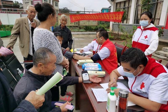 活动现场,通过悬挂宣传标语,发放健康宣传材料,为群众测血压、血糖、抽血等基本检查、还给群众检查腰腿等疾病,利用在检查时跟人民群众讲授传播健康知识、基本公共卫生等相关知识,并详细询问群众的身体状况,耐心分析病情,讲解注意事项,认真解答群众们关于常见病、多发病的预防诊治及愈后疑难问题。