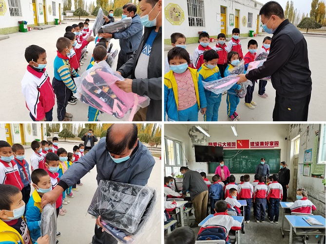 10月10日,拜城县人民检察院驻察尔齐镇吾斯塘布依村工作队带着新书包看望村小学学生,为19名生活困难学生送去了爱心书包,给新学年的孩子开学礼。