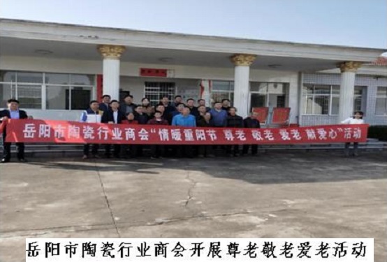 岳阳市陶瓷行业商会自2010年9月27日正式成立以来,连续一十一年一心一意情系敬老院、心系老人,在会长王成兰先生、监事会主任林兴先生的组织下,于每年的重阳节期间给长湖、新墙的这三家敬老院送去爱心水果、副食、礼金红包,陪老人开心地过节。
