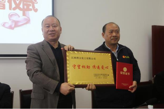 期间,省老区建设促进会向江西理文化工有限公司颁发捐赠爱心牌匾;活动还为码头镇辖区范围的80余贫困中小学生发放“爱心礼包”。