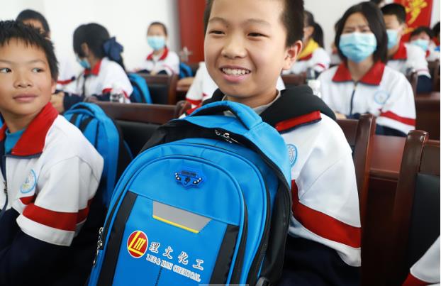 据了解,此次捐赠活动是江西理文化工有限公司积极响应“守望相助,传递爱心”关爱老区贫困儿童健康成长公益活动倡议,捐赠9万元认购“爱心礼包”300套。每套爱心礼包包括护脊反光安全书包、《经典国学》系列丛书、文具用品礼盒、真空不锈钢保温杯等。