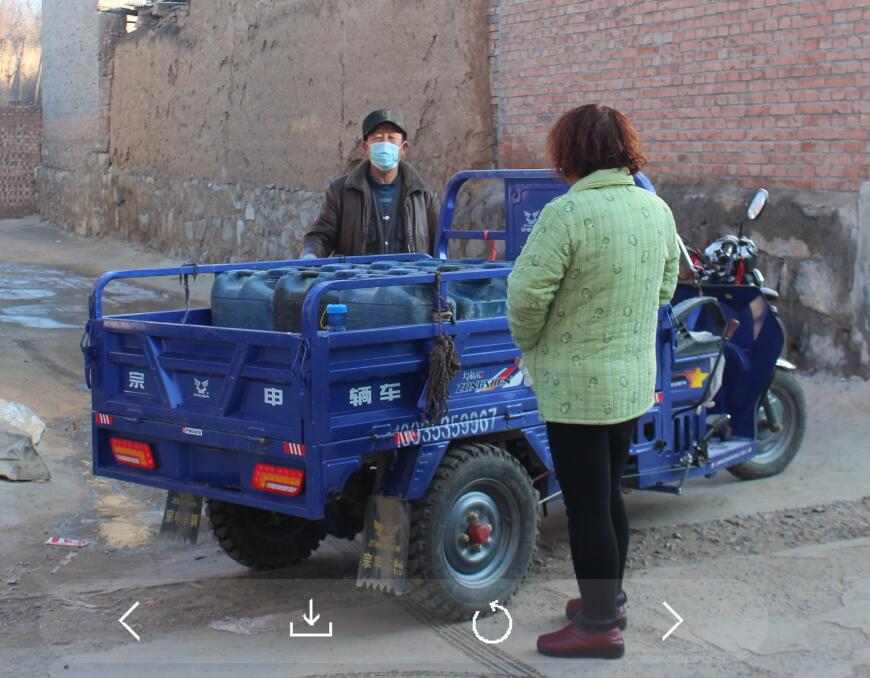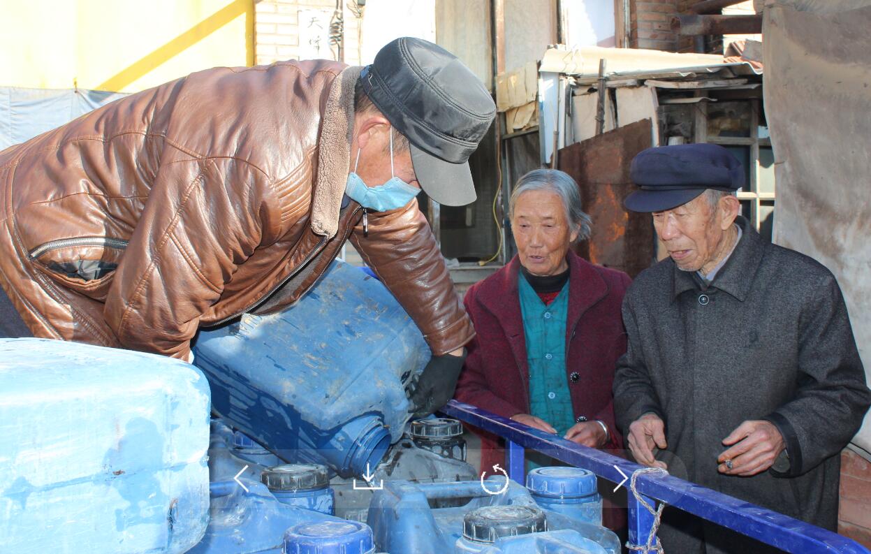 “大冬天的,人家们都歇的,你拉一车水做甚的啊?”王月生的妻子很是不理解。原来,小湖村的蓄水水洞正在维修,供水出现异常,全村一千多口人生活用水困难,吃水要到本村的抽水井房去拉。王月生看到后,立即伸出援手,开上自己的三轮车,清洗二十个蓄水桶,开始给小湖村缺水的村民上门送水。