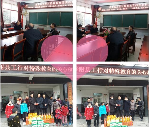 清风网讯(通讯员:胡红)为关注特殊儿童群体,12月10日上午,英山县工行行长李必松一行来到英山县特殊教育学校看望这里的学生,并为特殊教育学校的同学们送去了大米、食用油、奶、饮料等食品,并捐赠了现金。