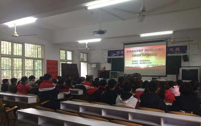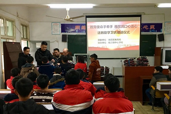 在湖南省长沙市雨花区教育局及相关领导的带领下,由湖南省邵阳市洞口县教育局领导的组织安排下,为湖南省邵阳市洞口县毓兰镇中学40位家庭困难儿童送上的生活卫衣40件和学习用品及相关帮扶物资。