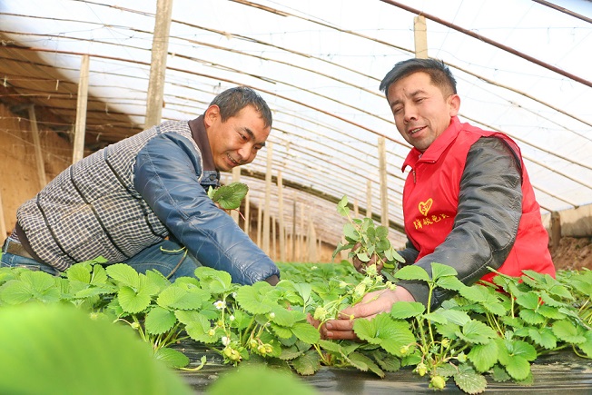 12月15日,库车市乌恰镇党员志愿者与村民一起清理草莓杂草。连日来,随着气温逐渐降低,该镇组织党员志愿者成立红马甲服务小分队,深入农户温室大棚现场查看蔬菜、水果种植生长情况,解决冬季农业生产中的实际困难。