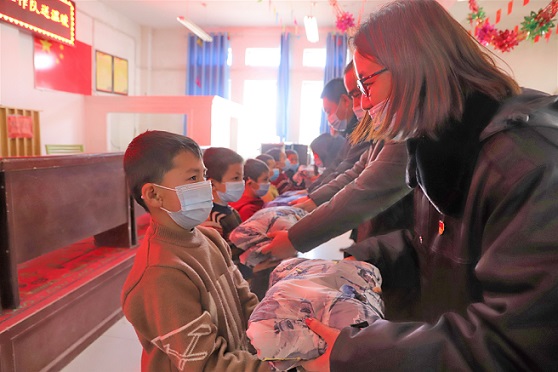 1月9日, 新疆阿克苏地区应急管理局驻库车市哈尼喀塔木乡阿克协海尔村“访惠聚”工作队开展“小衣大爱”送温暖活动。为54名困难儿童送去价值3万元的暖心冬衣,让孩子们过一个温暖的冬天。