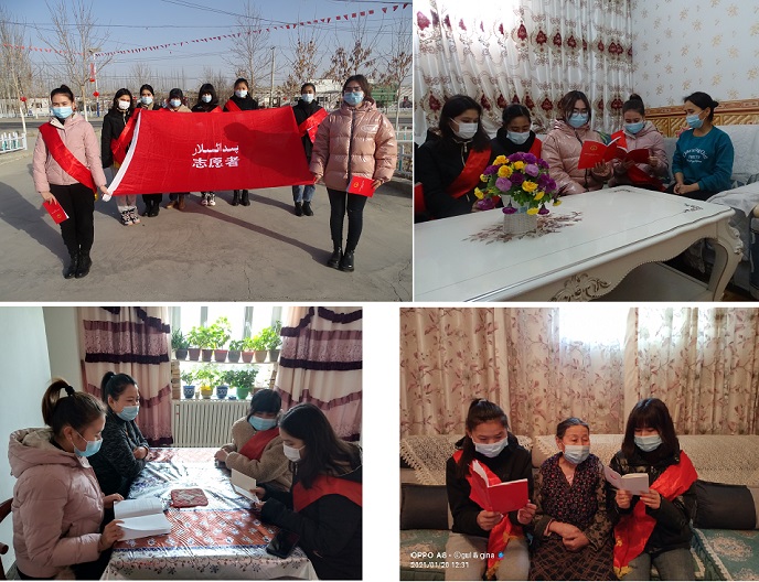 返乡大学生依再提古丽·托乎提说“回乡后我在村里实习,在工作队的指导下我学习了‘依法治疆、团结稳疆、文化润疆、富民兴疆、长期建疆’思想,作为新时代大学生,我们有义务、有责任参加志愿者活动和宣传党的惠民政策,今后我还要参与更多的志愿者活动。”
