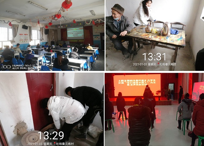 政策宣传小分队以3到5户为单元进行习近平第三次新疆工作座谈会、党的十九届五中全会、地委扩大会议精神宣讲。结合自己在外求学经历,返乡大学生们围绕党的惠民政策、民族团结、脱贫攻坚等内容向村民开展宣传教育,讲外面的人文环境以及内地老师和学生对新疆籍学生的关心和爱护、讲国家对新疆籍学生的各项优惠政策,用身边事感染身边人,把各族群众团结在党和政府的周围。
