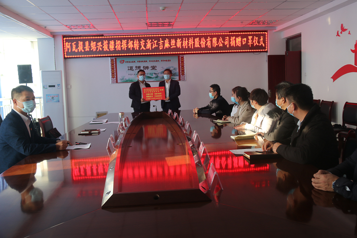 最后,代常务表示感谢浙江吉麻丝新材料股份有限公司为疫情防控的无私贡献,助力我县进一步做好常态化疫情防控工作。同时也表示将充分利用好捐赠物资,全力做好全县常态化疫情防控工作,切实保障全面人民的健康和安全。