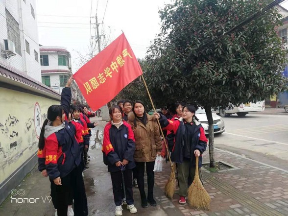 学生志愿者和教师们一起手持畚箕、火钳、扫把等清洁工具发挥不怕苦、不怕脏的精神,对校门口以及国道两边电杆上的垃圾广告、卫生死角进行了拉网式清理,志愿者们分工协作,你捡垃圾我装袋,将清理出来的垃圾装袋后运到垃圾屋。经过一个下午的清理,整个街道环境焕然一新。