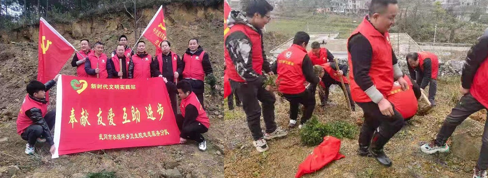 清风网讯(通讯员: 李了梅)和风吹拂三月暖,植树绿化正当时——湖南武冈市水浸坪乡卫生院开展义务植树活动