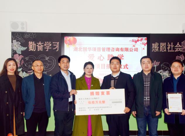 据悉,湖北国华项目管理咨询有限公司此次捐资50万元,专项用于全县留守儿童关爱中心建设及贫困学生资助,此次捐赠活动体现了社会爱心企业对留守儿童的关爱,白石坳小学启航校区作为全县留守儿童关爱中心也会铭记社会各界的深情关爱,怀着感恩之心,继续为留守儿童营造美丽温馨家园,放飞山区儿童美丽梦想!