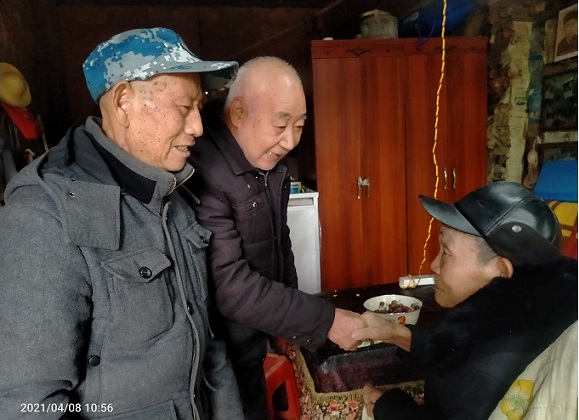 清风网讯(通讯员:岳志勇 李友能 岳佩云)4月8日,湖南邵阳武冈市司马冲镇长抄村省级文物保护单武穆宫管理委员会马昌松、许名清、周光红、漆美莲、戴红娇一行五人,开车160公里来到邵阳市经开区昭阳片区东城村17组看望,从医院住院出来还不久,今年87岁的老退伍军人,岳飞32世孙岳郁国老人,以表弘扬爱国主义思想,庆建党100周年征程,党员群众温馨老军人、老党员志愿者活动。