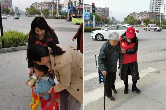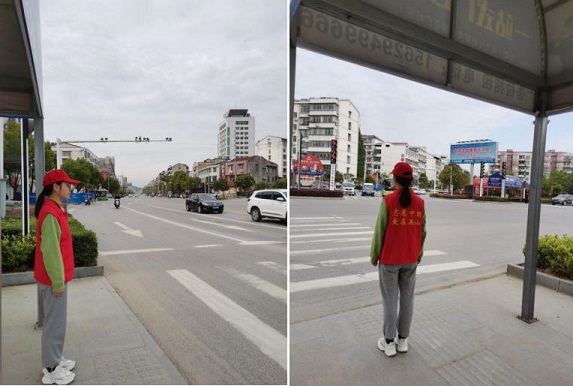 4月10日上午8点,白小教师志愿者们来到英山县温泉镇学府路红绿灯路口,统一着新时代文明实践志愿服装,迅速进入角色, “老奶奶,请走斑马线,这样比较安全。”“红灯停,绿灯行,请您遵守交通规则”、“请管好手中的垃圾”…… 她们的热情履责赢得了过往行人的注目和赞许,成为路上一道亮丽的风景线。