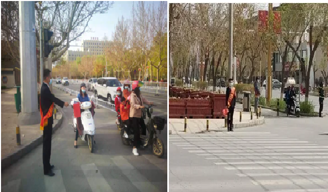 在早中晚人流高峰期,检察干警在县城人民路与北京路十字路口,佩戴着“文明礼仪、携手共进”绶带的志愿者们手持劝导旗,协助交警维持交通秩序,向过往行人进行交通安全意识宣传,提醒过往行人注意交通信号灯,对闯红灯的行人进行提醒跟劝阻;对行人不走斑马线、在机动车内候出租车、随意翻越跨栏等不文明行为和非机动车逆向行驶、闯红灯、机动车不礼让行人等不文明行为进行劝导。检察干警严谨的工作态度,良好的精神面貌和文明素养受到过往行人的高度评价,违规违章者在志愿者的精神感染下,表示今后一定遵守交通规则,做一个文明出行者。